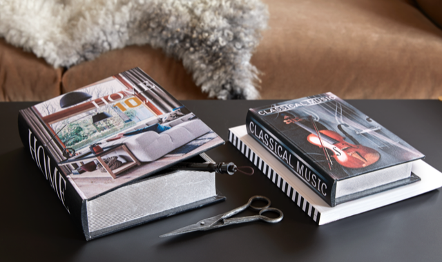 Praktilised ja väga dekoratiivsed hoiukarbid. Sobivad suurepäraselt esikusse kummutile, et hoida väikesi asju nagu võtmed ja pliiatsid, telekaalusel puldide jaoks või magamistoas ehete ja juuksekummide/juukseklambrite jaoks. Book on ka stiilne alus stillleben'i loomiseks, näiteks figuuride või küünlajalgade alla.