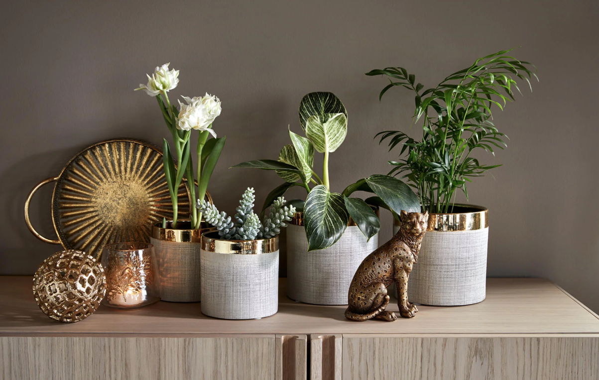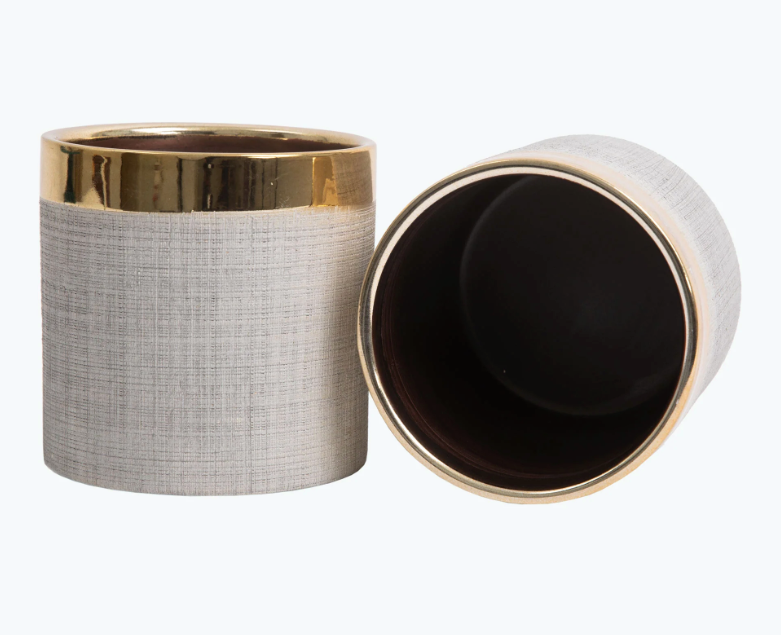 Võluv glasuuritud keraamiline pott kuldse äärega. Poti stiilne muster on käsitsi maalitud. Camden pott on saadaval kahes suuruses ja ka hõbedase äärega.