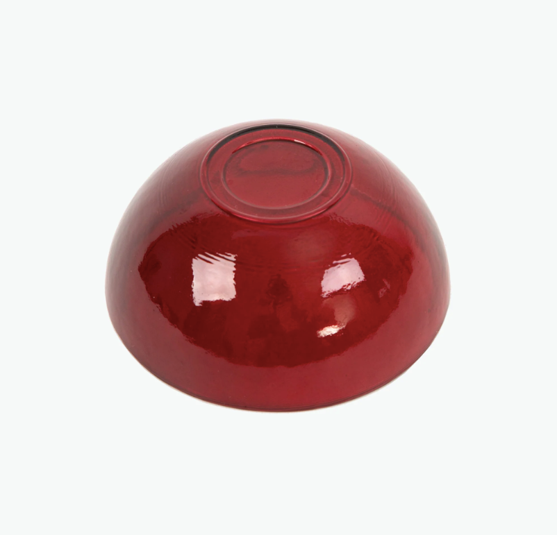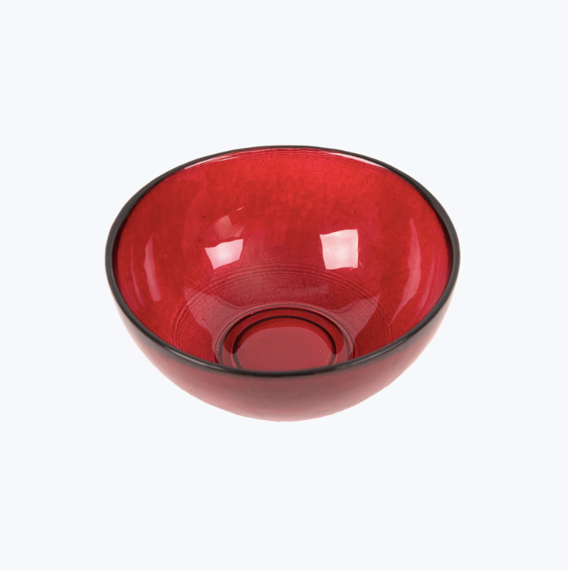Katke Cereza sarjaga värvikas ja värske laud. Cereza sari on valmistatud taaskasutatud pressklaasist ja on imeliselt kauni punase värviga. See värvikas sari koosneb erineva suurusega kaussidest, vaasist, kannust, joogiklaasidest ja korgiga pudelist. Kauss sobib suurepäraselt näiteks suupistete, dipikastmete ja maiustuste serveerimiseks.