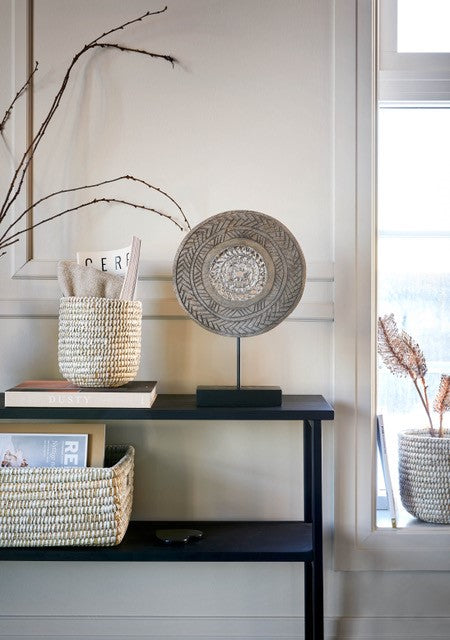 Dekoratiivne käsitsi valmistatud figuur, mis on tehtud mangopuust ja mille keskel on metallplaat. Sobib suurepäraselt aknalauale või kummutile. See on täiesti unikaalne kunstiteos!