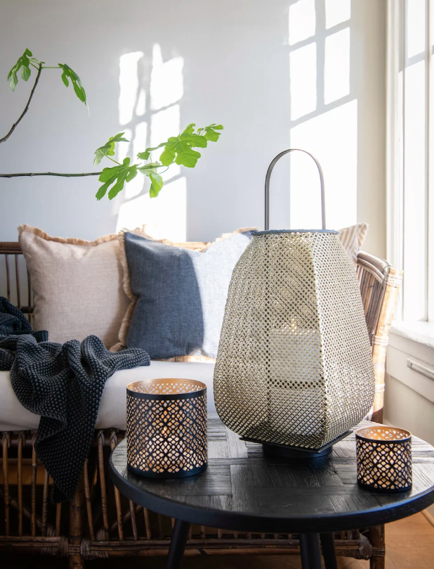 Stiilne käsitsi valmistatud latern mustast ja kuldsest rauast. Louis latern sobib ideaalselt meie Ambience LED-tulede või Glow lambiketi külge.