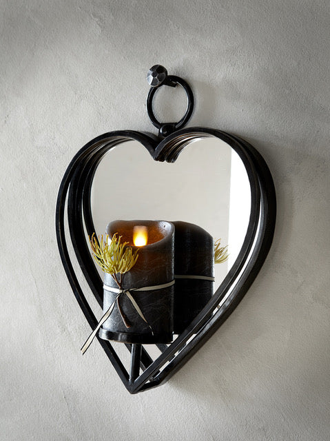 Love seinaküünlajalg peegliga on valmistatud metallist, tumeda antiikse viimistlusega. See on kaunis pilgupüüdja seinal. Sobib plokk-küünaldele.