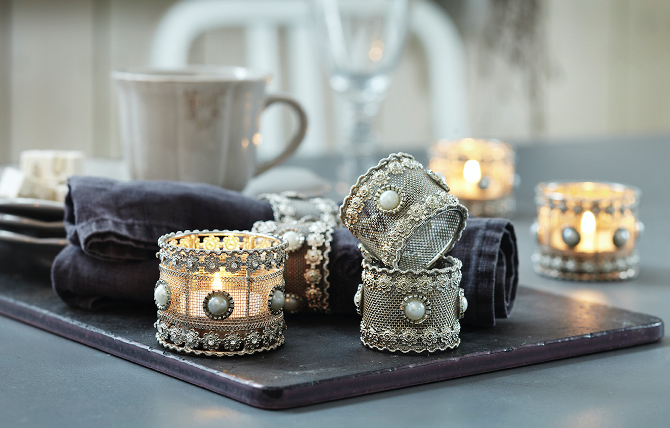 Kaunid rauast teeküünlaalused, kaunistatud pärlite ja kividega.