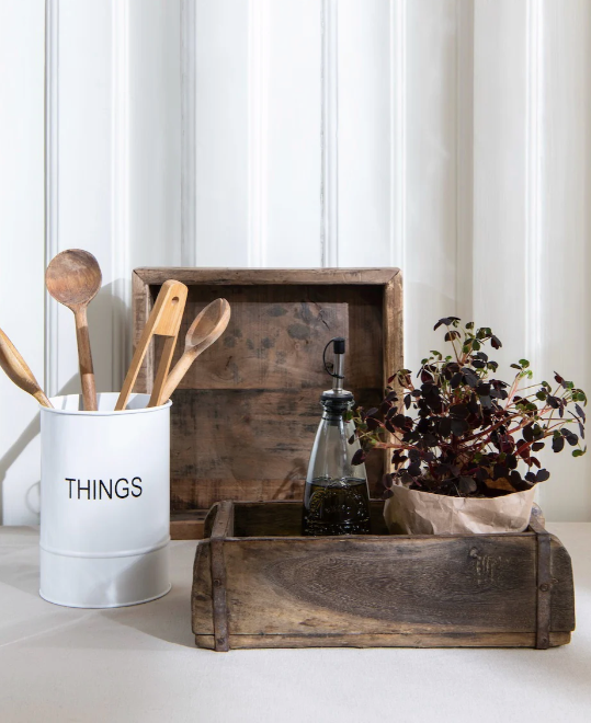 Stiilne hoiukast, valmistatud taaskasutatud puidust. Kasti saab kasutada igas maja ruumis: vannitoas seepide ja kreemide jaoks, köögis ürtide, õlide, ketšupi- ja sinepipudelite jaoks, elutoas lillede jaoks (tihedas anumas), magamistoas juukseaksessuaaride või ehete jaoks. Huvitav fakt: see kast oli algselt telliskivide valuvorm.