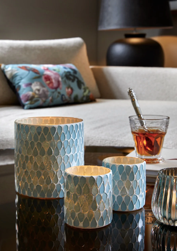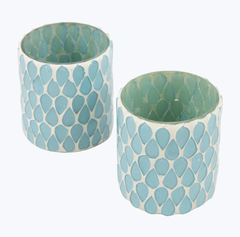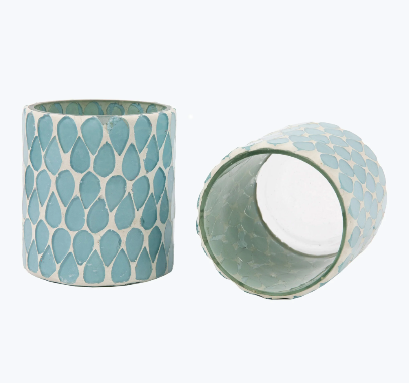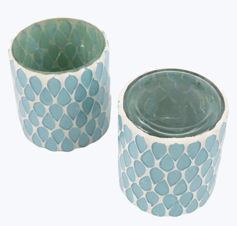 Imeliselt kaunid küünlaalused, kaunistatud helesinise klaasmosaiigiga, mis loob kauni värvimängu. Esmalt puhutakse klaas suuga, seejärel lisatakse peen mosaiik käsitsi. Malta küünlaalused annavad imelise sära, kui neisse küünlad süüdata.