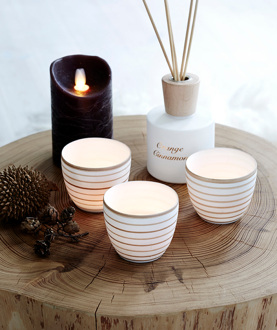 Armsad, õhukesest valgest läbipaistvast portselanist teeküünlaalused, millel on käsitsi maalitud kuldne dekoor.