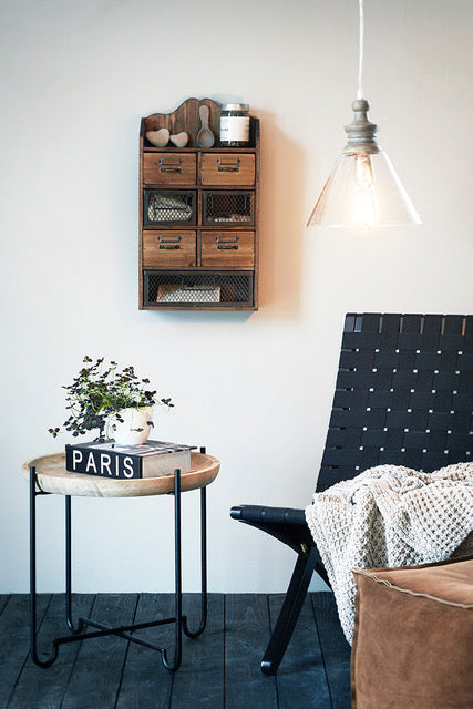 Praktiline riiul 7 väikese sahtliga pisiasjadele. Sobib hästi esikusse, kööki või magamistuppa. Pange tähele, et puitkonstruktsioonis võib esineda väikesi pragusid.