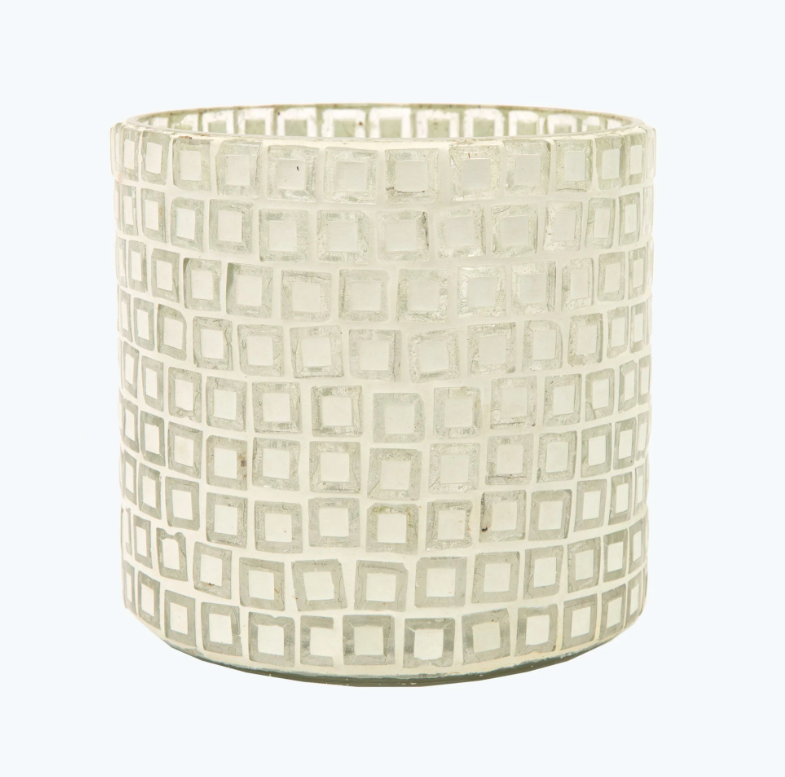 Atmosfääriline latern, mis on kaunistatud valge klaasmosaiigiga.