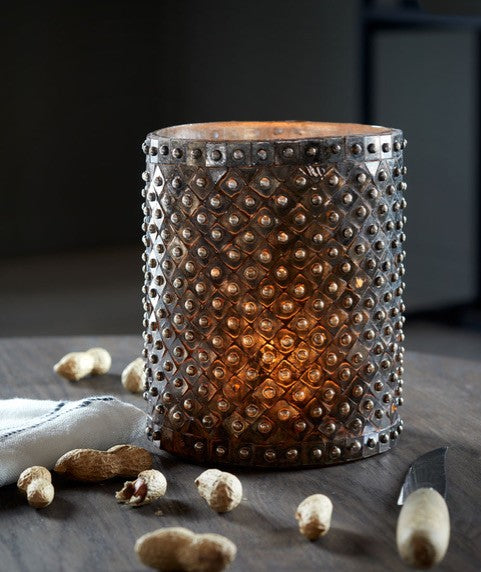 Kaunis latern/vaas suupuhutud klaasist, kaetud klaasmosaiigiga.