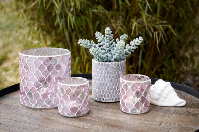 Imeline suvine latern, mis on valmistatud klaasmosaiigist ja millel on kaunis roosa, sädelev värv. Rosie't saab kasutada ka vaasina.