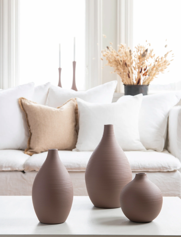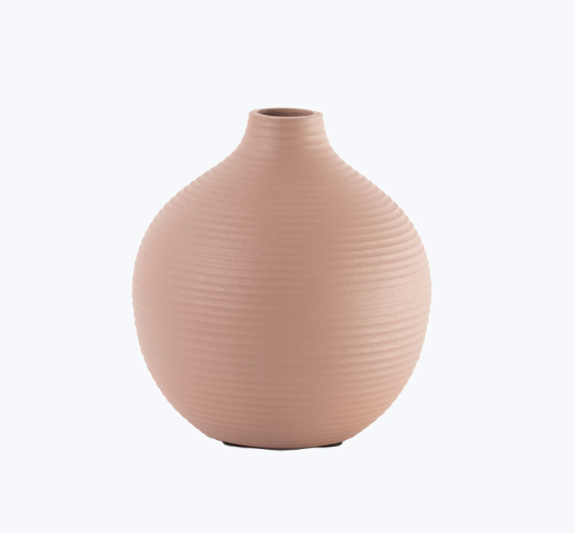 Imeline alumiiniumvaas meeldiva puuderroosa värviga. Vaas on ilus nii üksi kui ka koos teiste sama sarja vaaside ja küünlajalgadega. Vaas on nagu skulptuur iseenesest, aga fantastiliselt kaunis ka õlgede, okste või lilledega. Kujundeid on saadaval tolmuroosa ja tolmurohelise värvitoonides. Värve saab omavahel kombineerida.